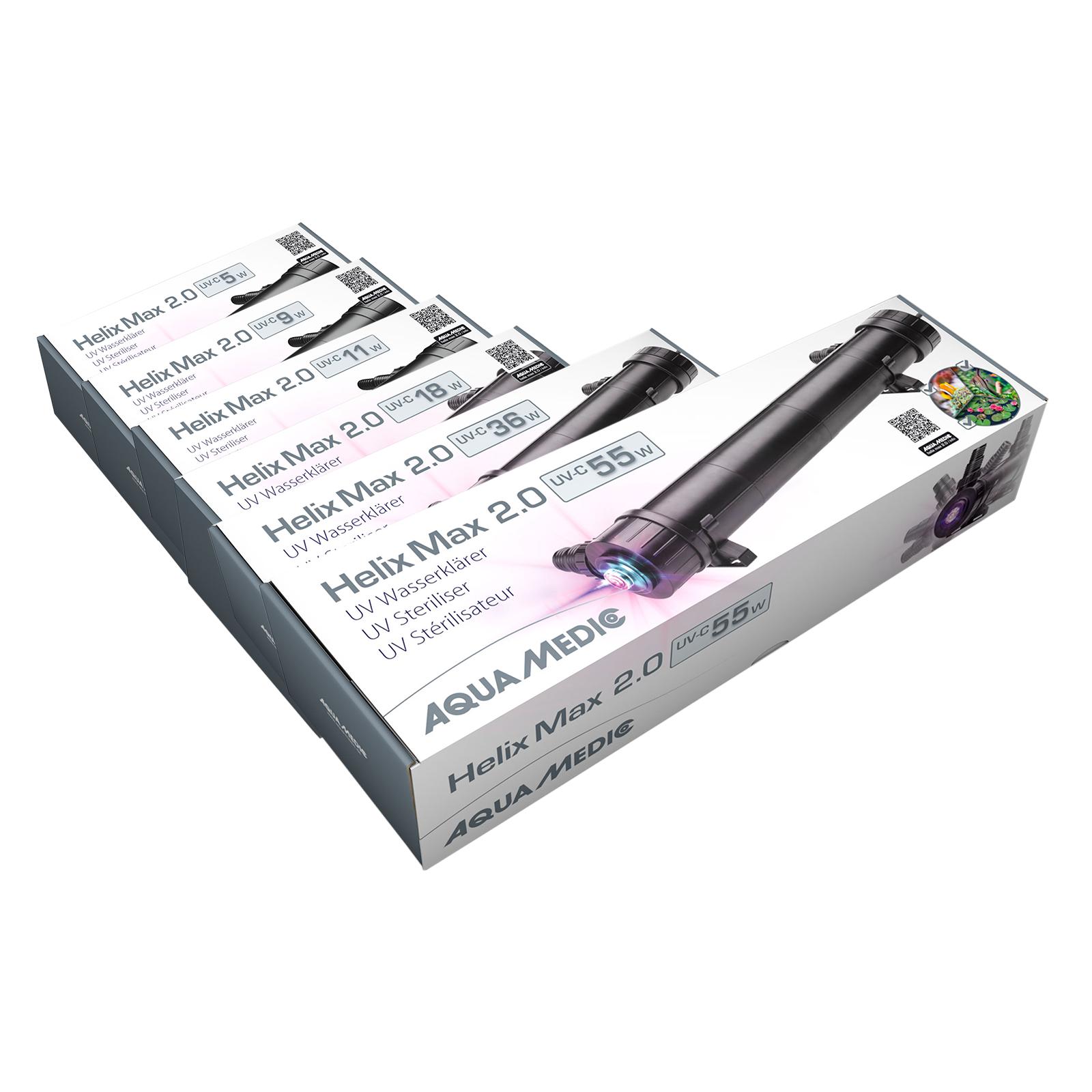 – Alle Versionen der Helix Max 2.0 sind mit einem elektronischen Hochfrequenz-Vorschaltgerät für Meer- und Süßwasseraquarien ausgestattet. Durch die elektronischen Vorschaltgeräte wird eine höhere UV-Ausbeute und längere Lebensdauer der UV-Lampen gewährleistet.