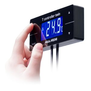 SKU AE25-00014 Kategorien Heiz.- und Kühltechnik, Zubehör Heiz- und KühltechnikDer Temperaturcontroller T controller twin dient der Steuerung von Heizgeräten und Kühlanlagen. Die Mess- und Schaltgenauigkeit beträgt 0,1 °C. Der Sollwert kann in 0,1 °C Schritten im Regelbereich von 16 – 40 °C eingestellt werden. Die maximale Schaltleistung beträgt für Heizer 1.200 Watt und für Kühlanlagen 460 Watt. Durch die integrierte Doppelsteckdose können jeweils ein Heizgerät und eine Kühlanlage gleichzeitig angeschlossen werden. Der T controller twin ist mit einem fest angeschlossenen, meerwasserbeständigen Temperaturfühler ausgestattet. Die LCD-Anzeige gibt jederzeit Auskunft über die aktuelle Temperatur. Die Minimal- und Maximalwerte lassen sich durch einfachste Bedienung einstellen.